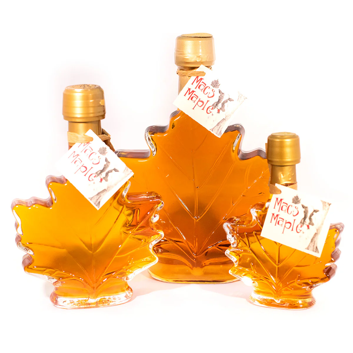 Our Grade A Amber maple syrup is rich, smooth, and full of classic maple flavor—perfect for drizzling over breakfast favorites or adding a touch of natural sweetness to recipes. Packaged in a beautifully crafted 500 mL maple leaf-shaped bottle, this syrup makes an excellent gift for maple lovers and a charming addition to any table. Whether for a special occasion or a treat for yourself, this bottle is as delightful to display as it is to enjoy.